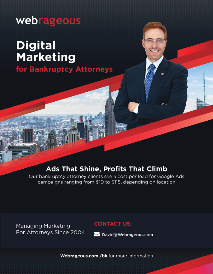 Are you a bankruptcy attorney looking to maximize your online presence and attract more clients? Webrageous specializes in marketing tailored specifically for bankruptcy attorneys. With over 20 years of experience in legal campaigns, we deliver measurable results that help law firms grow their client base while reducing advertising costs.